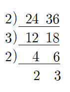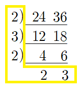 세 자연수 24, 36, 20의 최소공배수를 구해봅시다.
