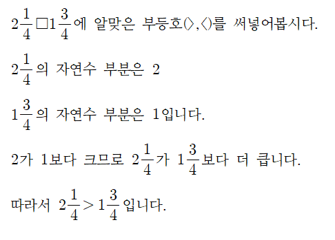 먼저 가분수끼리, 대분수끼리 비교해봅시다.