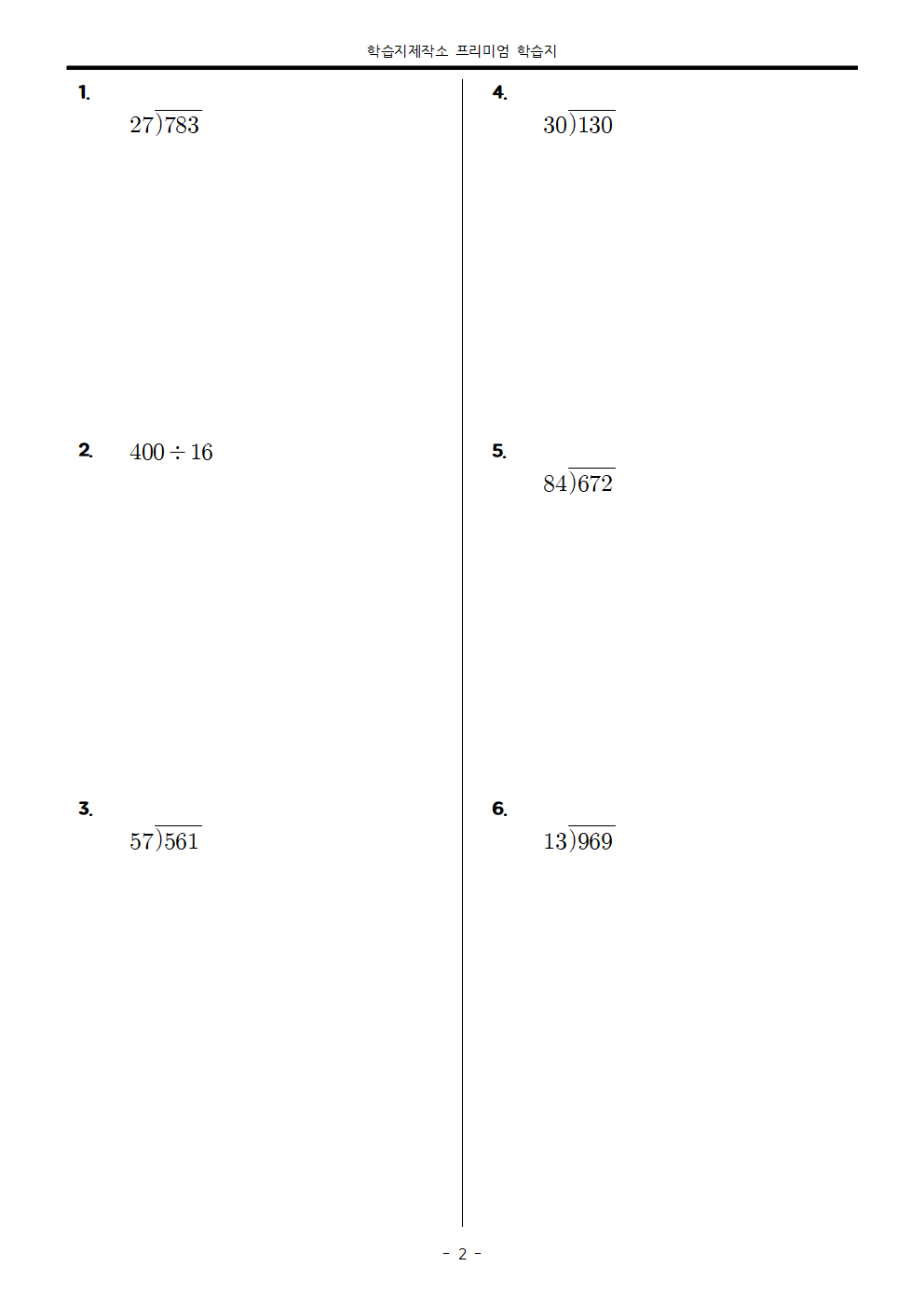 | 나누어 떨어지는 (세 자리 수)÷(두 자리 수) - 가로셈 (1) : 50문제 | 보충학습지 (0) | 2020.10.27 |