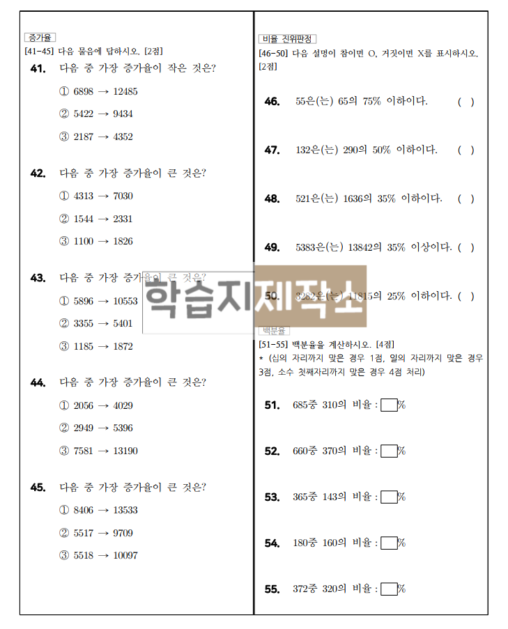 f) 증가율, 변화율(5문제)