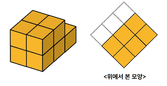 그런데 위에서 본 모양은 6칸이 색칠되어있으므로