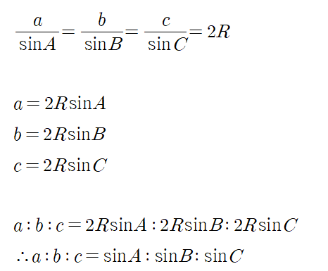 (단, a,b,c는 각 A,B,C의 대변의 길이)