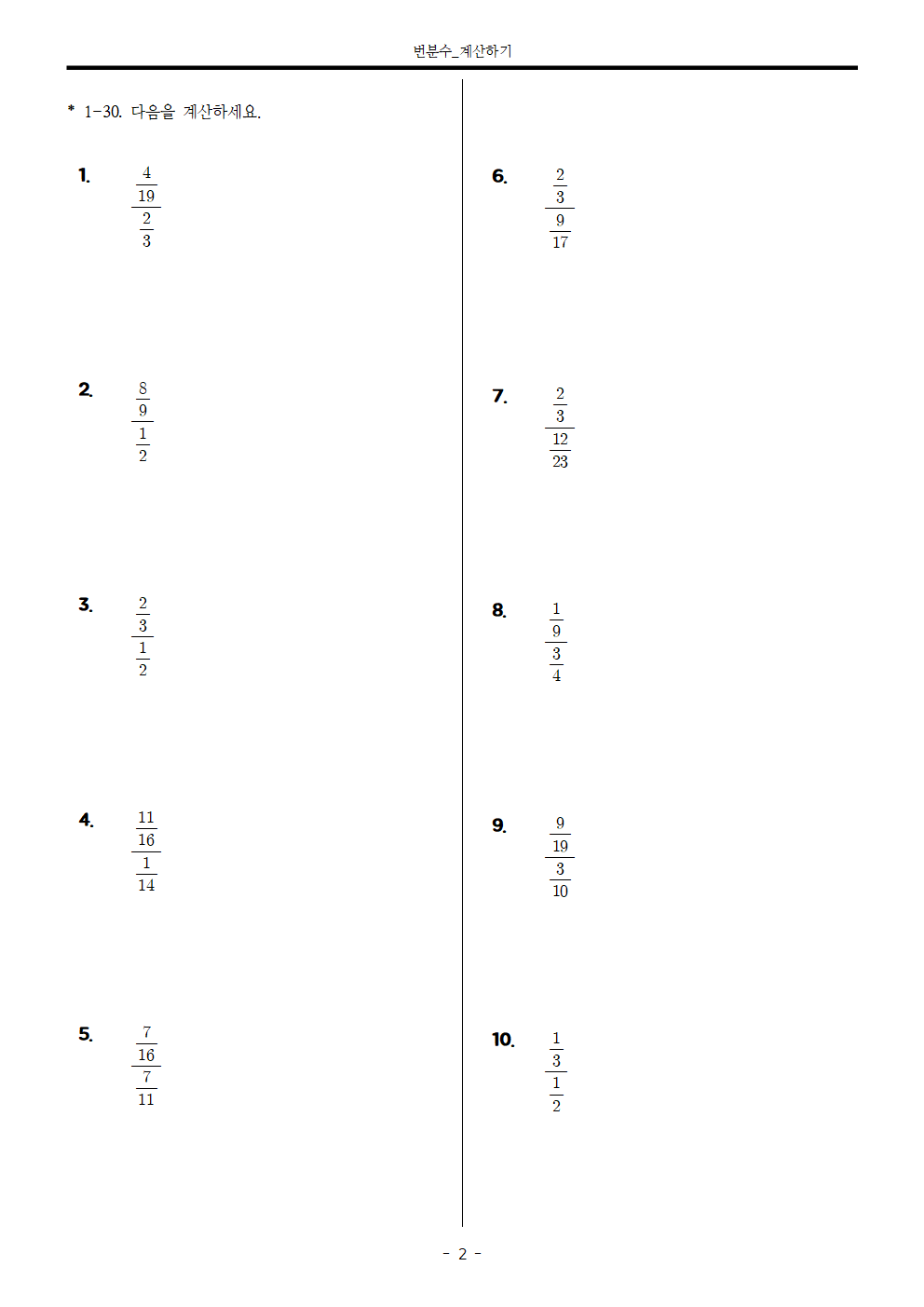 #태그 : 번분수의 뜻, 번분수의 계산 학습지, 번분수의 계산 방법, 번분수 문제, 다운 ,다운로드, PDF, 학습지제작소