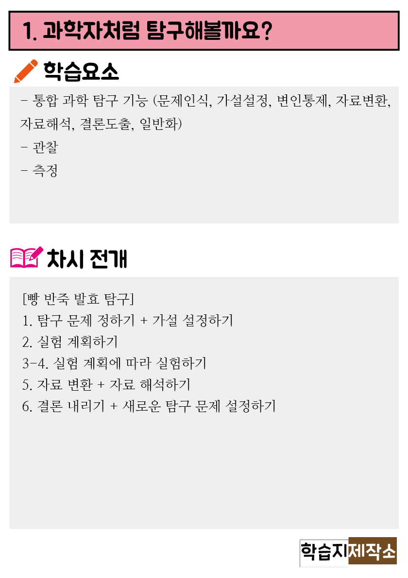 1단원은 탐구 능력을 중심으로 기르는 단원입니다. 5-6학년에서는 통합적인 탐구 능력을 키우게 되는데,