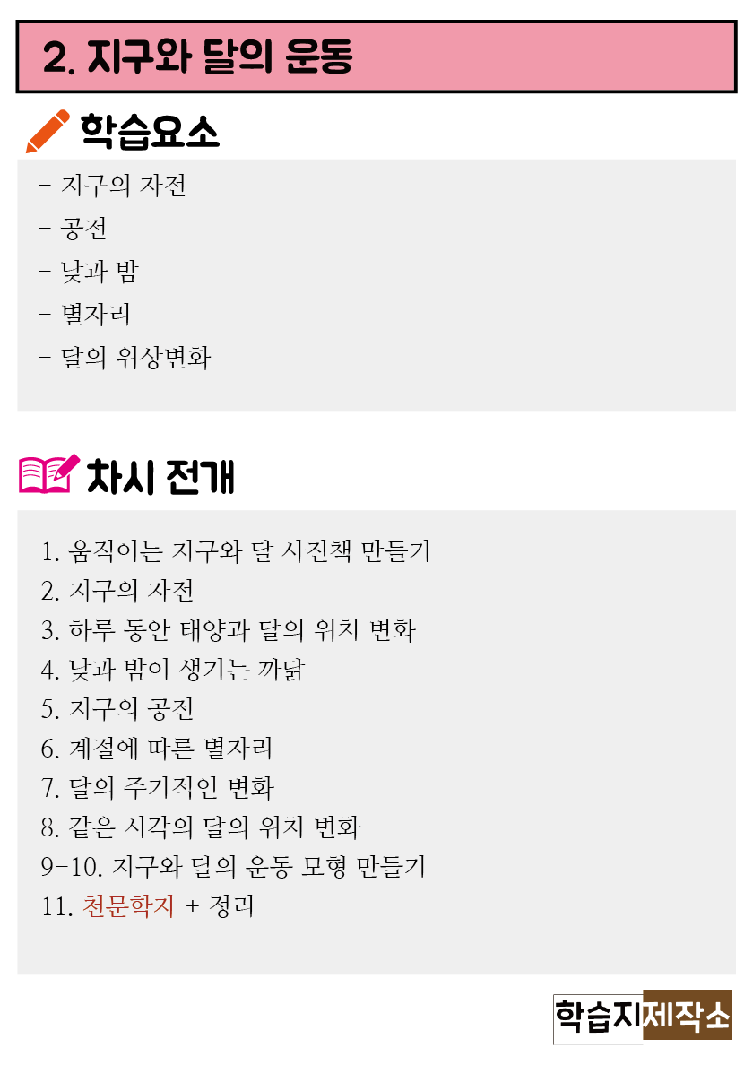 2단원은 지구와 달의 운동으로, 지구의 자전과 공전을 배웁니다.