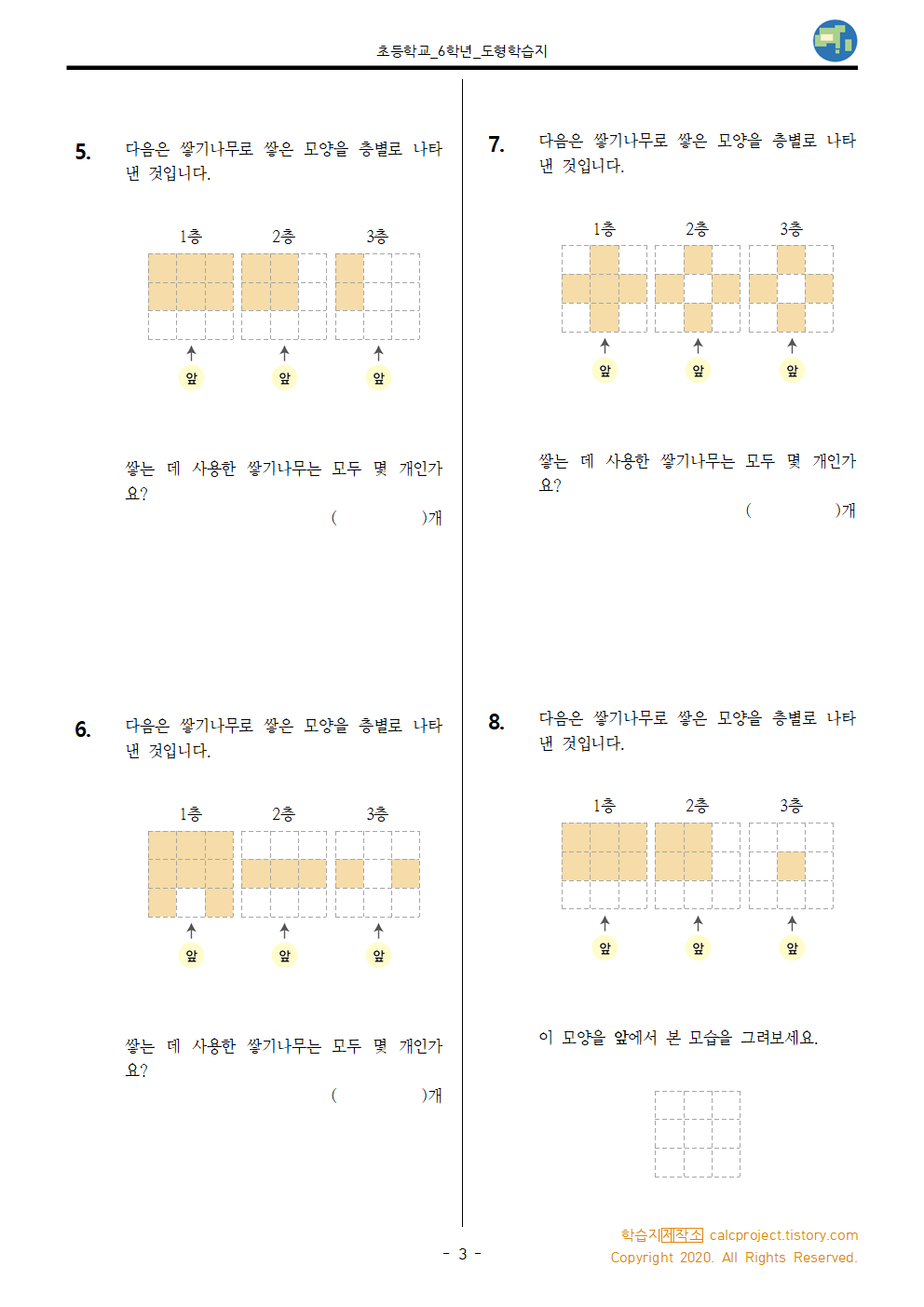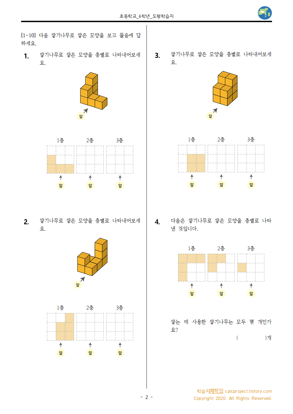 #태그 : 초6, 초등학교 6학년, 공간과 입체, 층별로 나타내는 방법, 학습지제작소