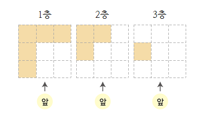 1층, 2층, 3층 모양을 그려보면 아래와 같습니다.