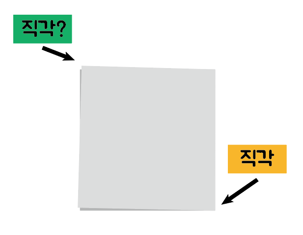 직각을 만드는 활동에서 직각이 이미 있다면, 어떤 각이 이야기하고 있는지 헷갈릴 수 있습니다.