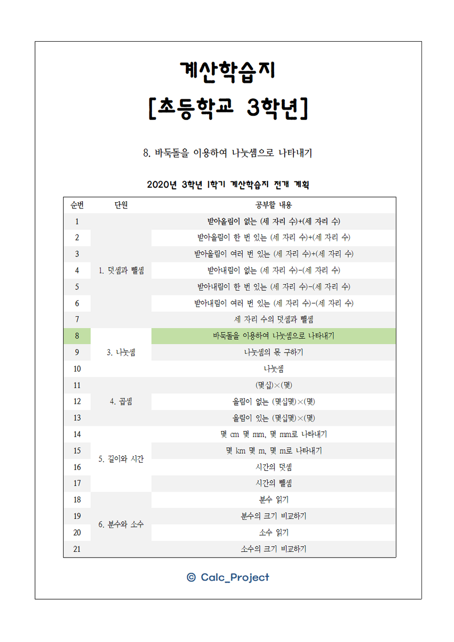 [2020TS E3] 초등학교 3학년 연산 연습 학습지입니다.