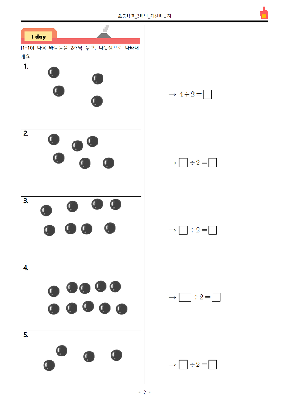 | 나누는 수가 한 자리 수인 나눗셈 (개념+연산문제) (0) | 2020.03.20 |