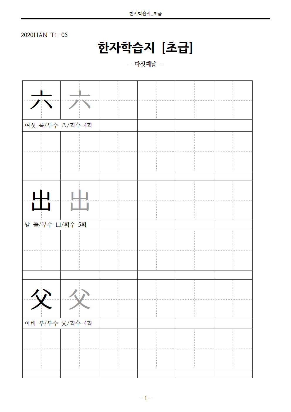 | [초급] 한자학습지 한자쓰기연습 Day 1 (한자자격시험, 초등학교 한자, 자료 다운로드) (0) | 2020.12.16 |
