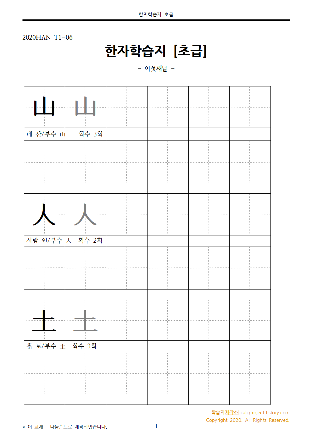 | [초급] 한자학습지 한자쓰기연습 Day 1 (한자자격시험, 초등학교 한자, 자료 다운로드) (0) | 2020.12.16 |
