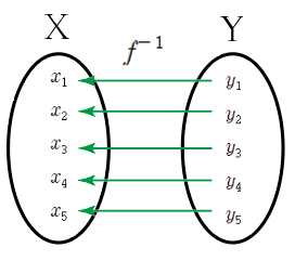 만약 함수 f가 일대일대응이라면,집합 Y를 정의역, 집합 X를 치역으로 하는 규칙이 성립합니다. 이때 함수를 f의 역함수라고 부르고