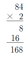 예) 31×6 __ 84×2에 >,=,<중 알맞은 것을 써넣으시오.