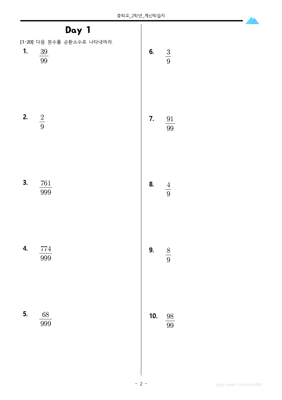 유리수와 순환소수의 두 번째 학습지에 대해 이야기해보려고 합니다.