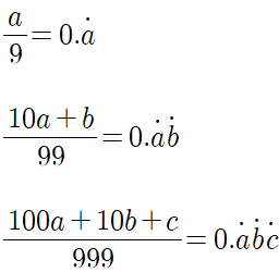 분수의 분모는 순환마디를 결정합니다. 현재 단계에서는 분모가 9,99,999인 진분수만 다루겠습니다.
