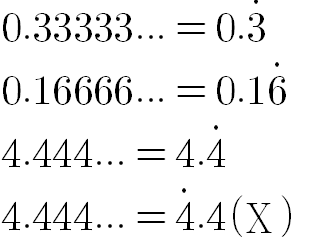 순환마디와 관계없는 숫자가 있는 경우, 순환마디가 처음으로 시작하는 부분에서 점을 찍습니다.