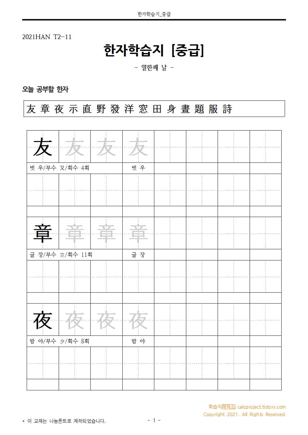 | [중급] 한자쓰기연습 Day 9 (6급, 5급 선정한자 연습장) (0) | 2021.01.15 |