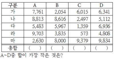 PSAT에서는 표의 합을 빠르게 구해야 할 때가 있습니다.