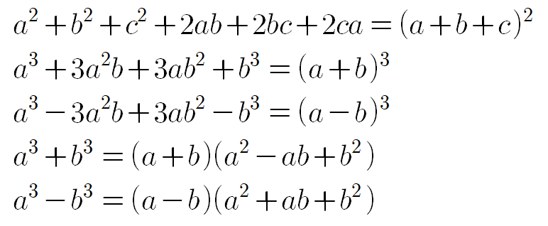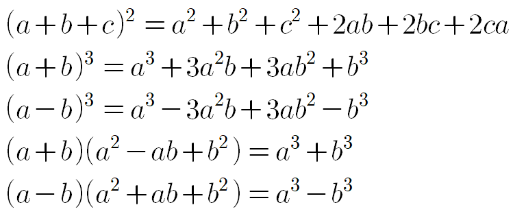 고등학교에서는 다음과 같은 다섯 가지의 새로운 인수분해 식을 배웁니다.