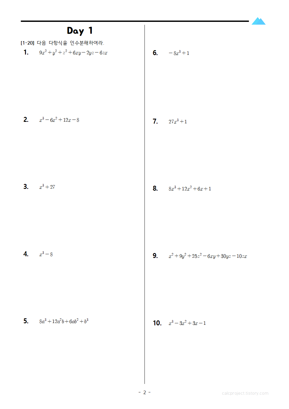 #태그 : 고등학교, 수학, 고등수학(상), 인수분해, 인수분해 문제, 수학문제, 고등학교 수학 문제, 다운, pdf, 인수분해 고등학교 문제, 곱셈공식, 삼차식, 완전제곱식
