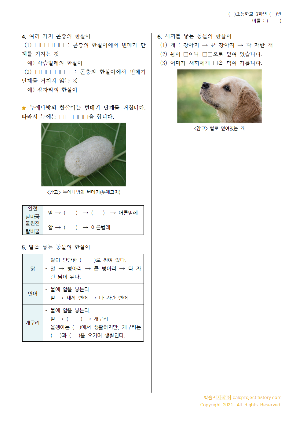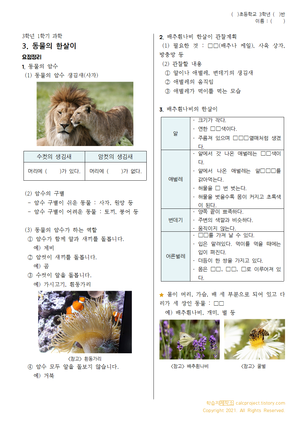 #태그 : 과학, 초등학교 3학년 1학기, 동물의 한살이 단원정리, 동물의 한살이 요점정리, 동물의 암수, 탈바꿈, 알, 새끼, 배추흰나비 관찰하기, 동물의 한살이 정리