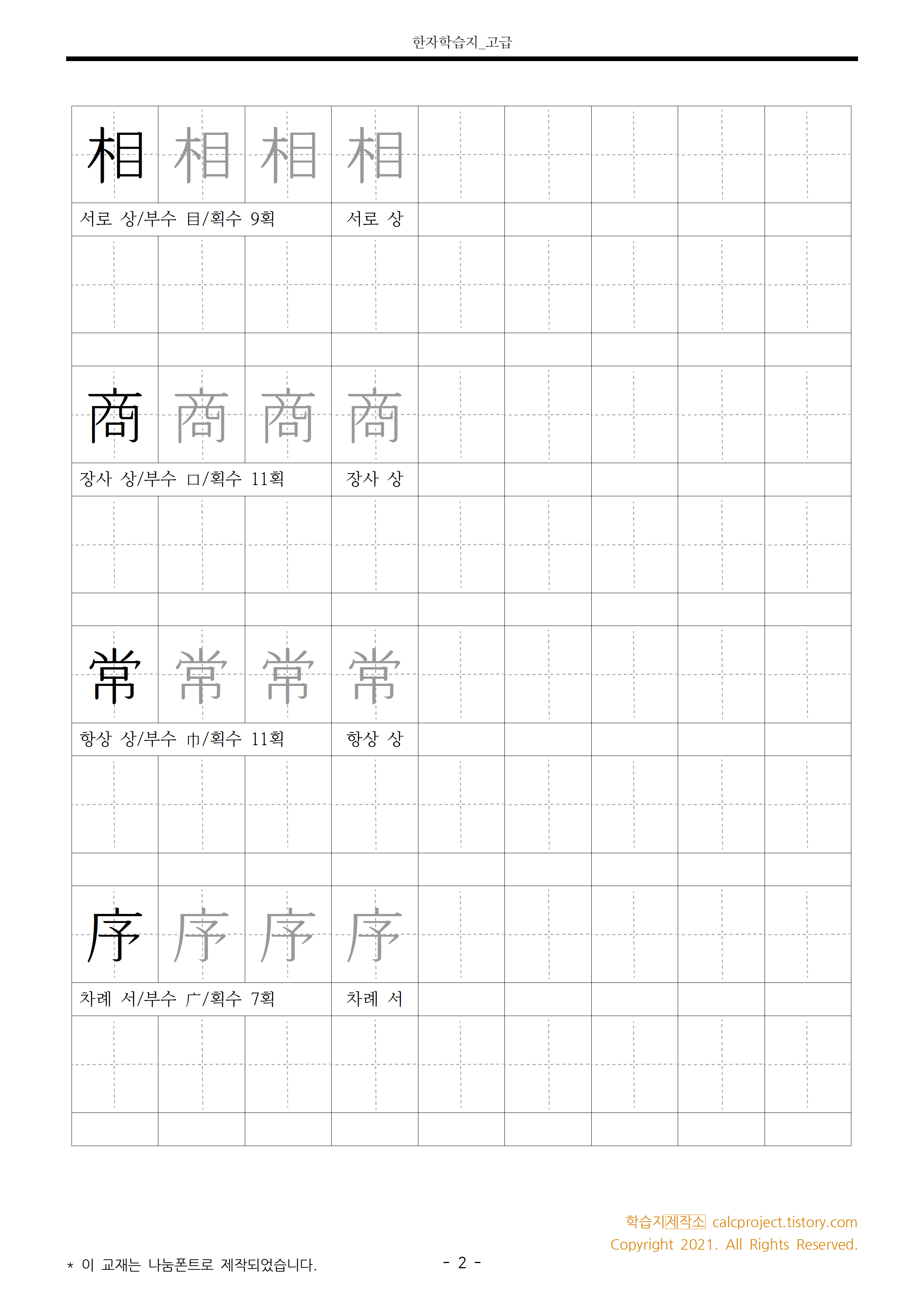 | 한자쓰기연습 고급 Day 6 한자학습지 다운로드 (0) | 2021.03.25 |