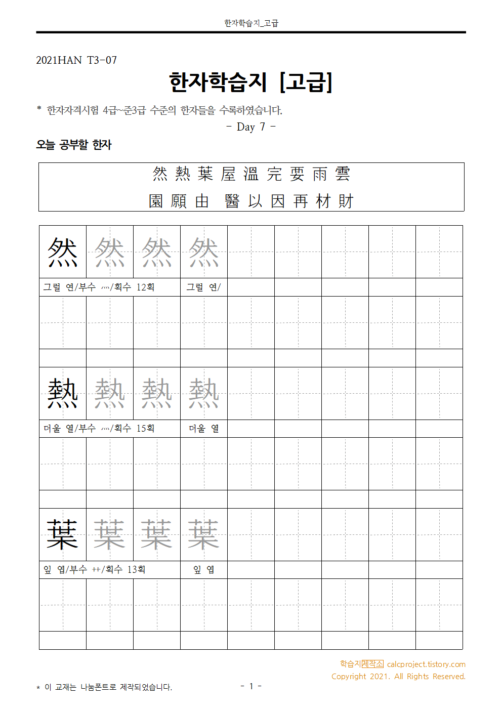 | 한자쓰기연습 고급 Day 6 한자학습지 다운로드 (0) | 2021.03.25 |
