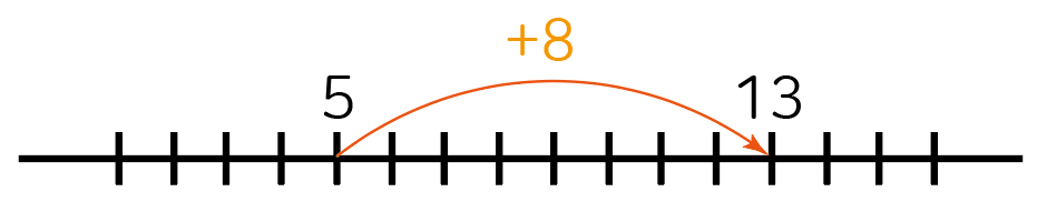 5에서 13으로 가기 위해서는 양의 방향(오른쪽)으로 8만큼 이동해야 합니다.