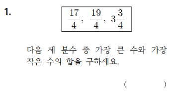 이 유형은 분수의 크기를 비교한 뒤, 가장 큰 분수와 가장 작은 분수를 더하는 문항입니다.