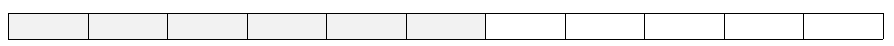 위 그림은 11개의 조각 중, 6개를 색칠한 것으로 6/11을 의미하게 됩니다. 위 그림은 서로 같은 크기의 조각 6개로 이루어져 있으므로, 아래 그림과 같이 똑같이 3으로 나눌 수 있습니다.