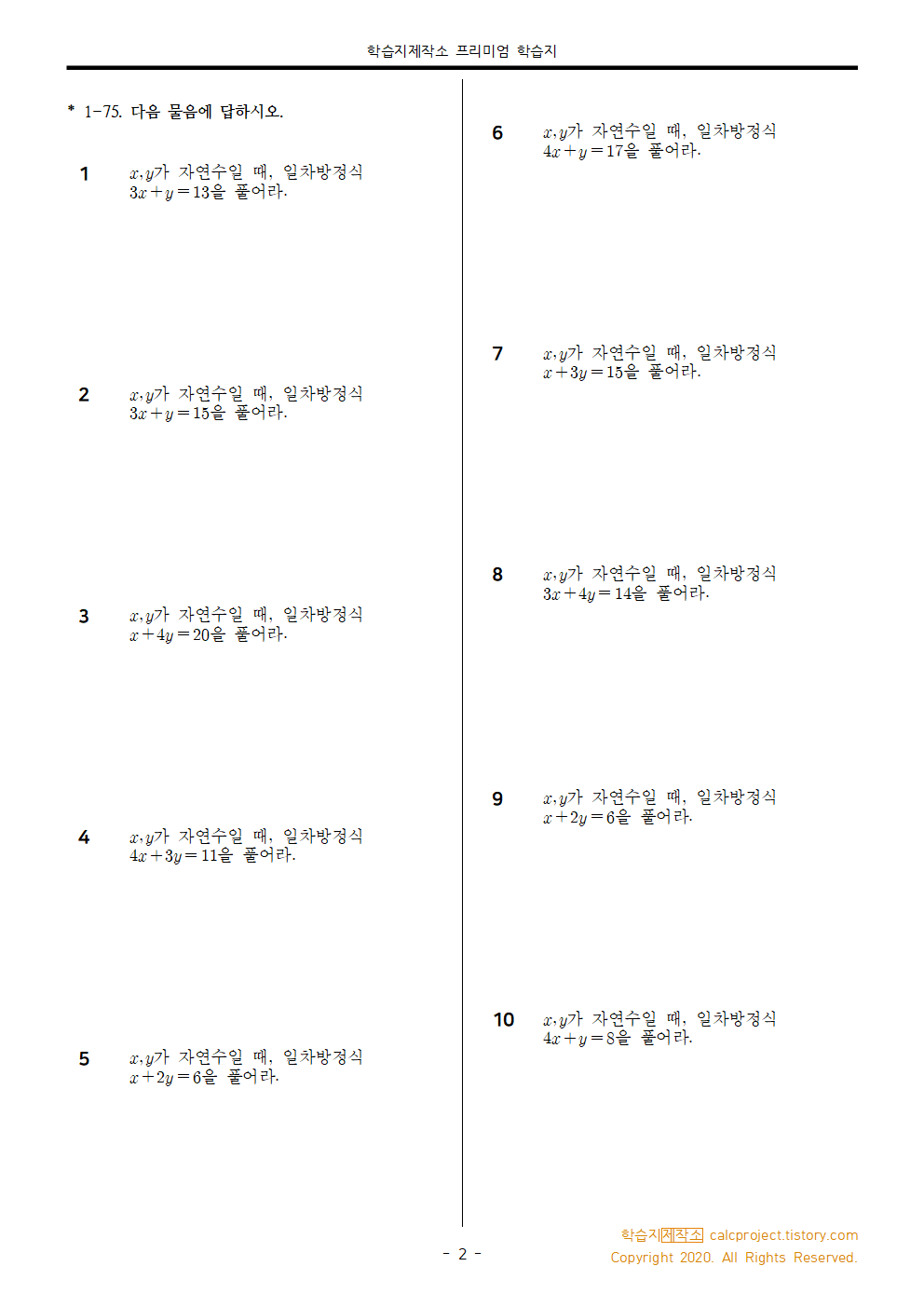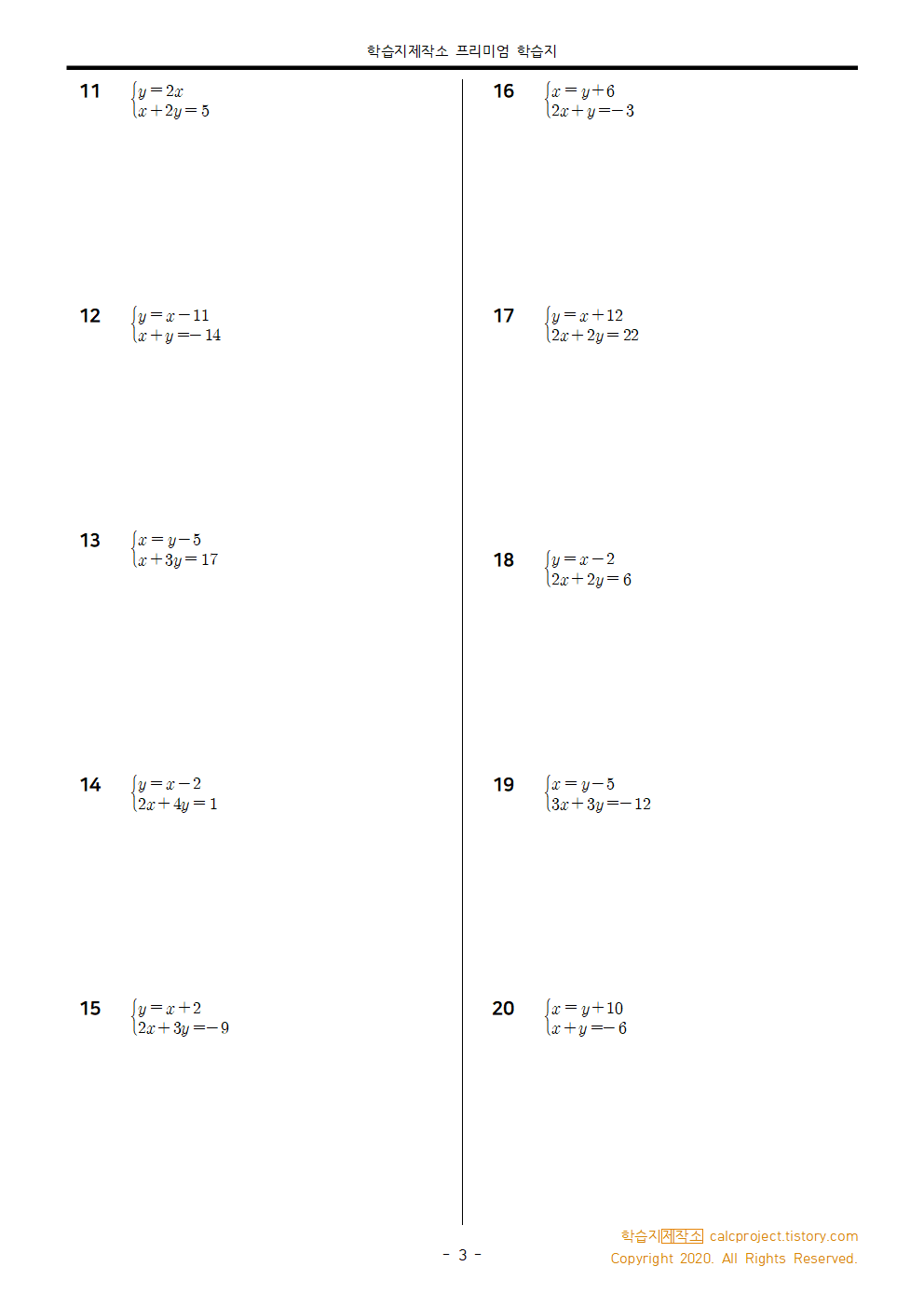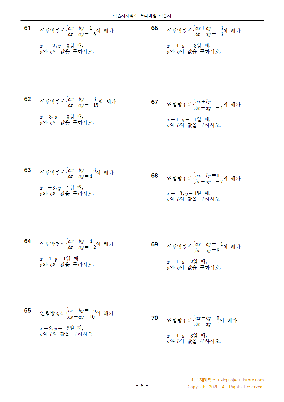 이 학습지는 2020년에 구독자님의 요청으로 만든 연립방정식 단원 종합 학습지입니다.