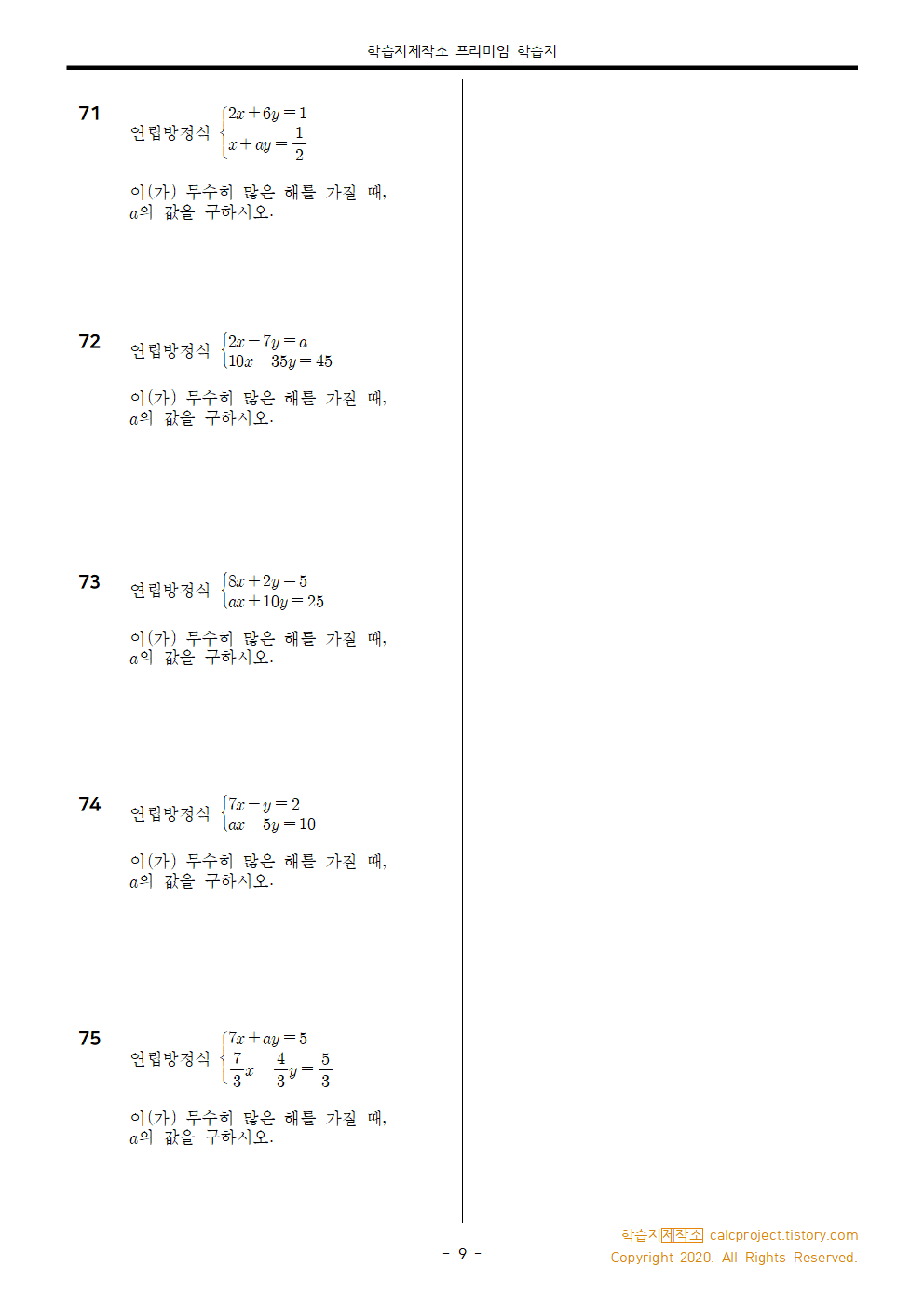 - 71-75) 해가 무수히 많을 때, 존재하지 않을 때