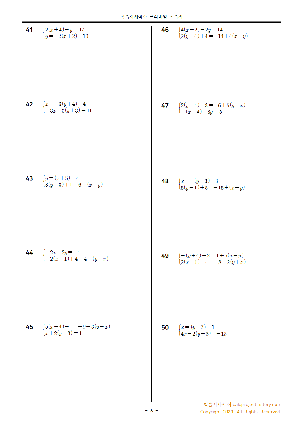 - 41-50) 괄호가 포함된 연립일차방정식