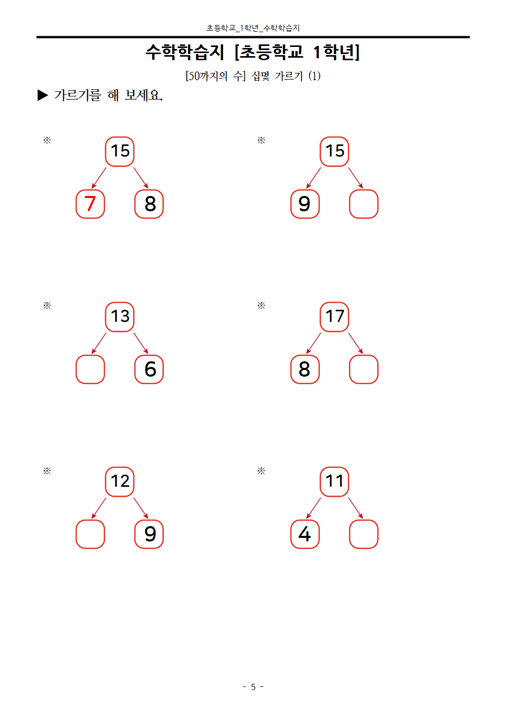 '수학 학습지 > 초등학교 1학년 1학기' 카테고리의 다른 글