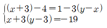 (x+3)-4=1-3(y-x)에서 분배법칙을 적용해주면,