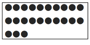 먼저 10이 몇 묶음인지 알아봅시다. 10씩 바둑돌을 묶으면 그림과 같습니다.