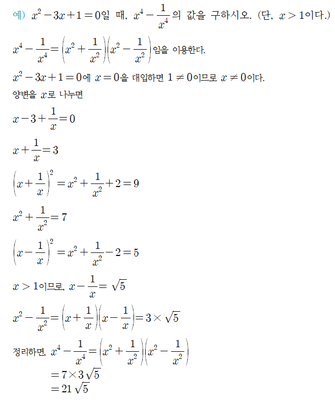 하지만 x와 1/x의 합이 주어진다면, 식 하나로도 문제를 풀 수 있습니다.