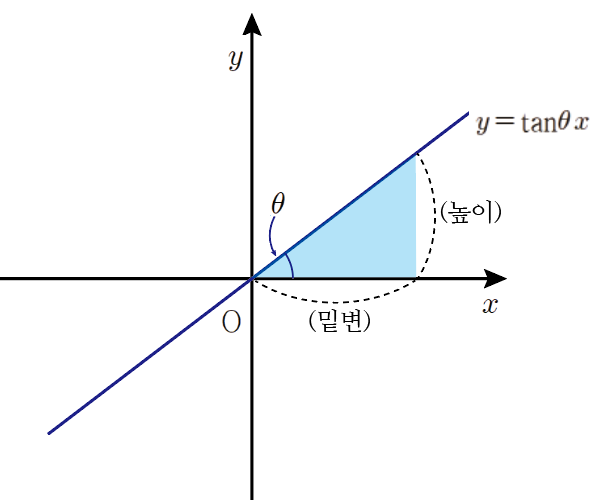 삼각비 sin, cos, tan 중 tan(탄젠트)는 일차함수의 기울기와 밀접한 관계가 있습니다.