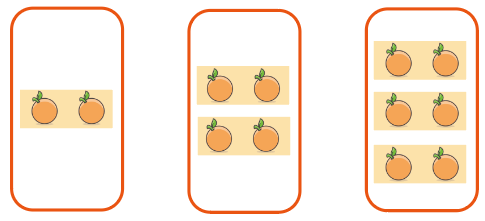 오른쪽 상자에는 오렌지가 2개씩 3묶음이 있습니다.