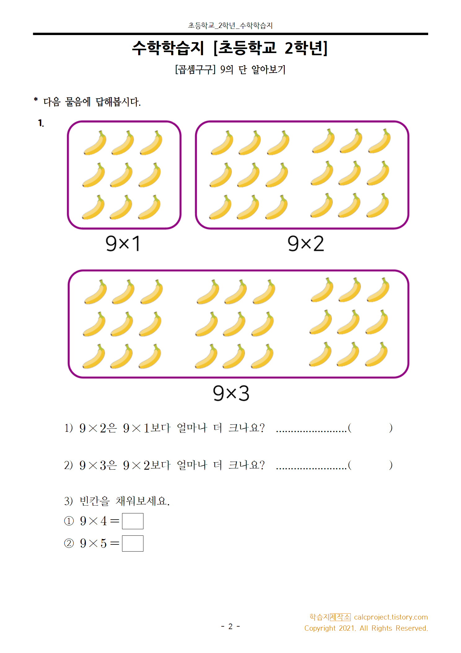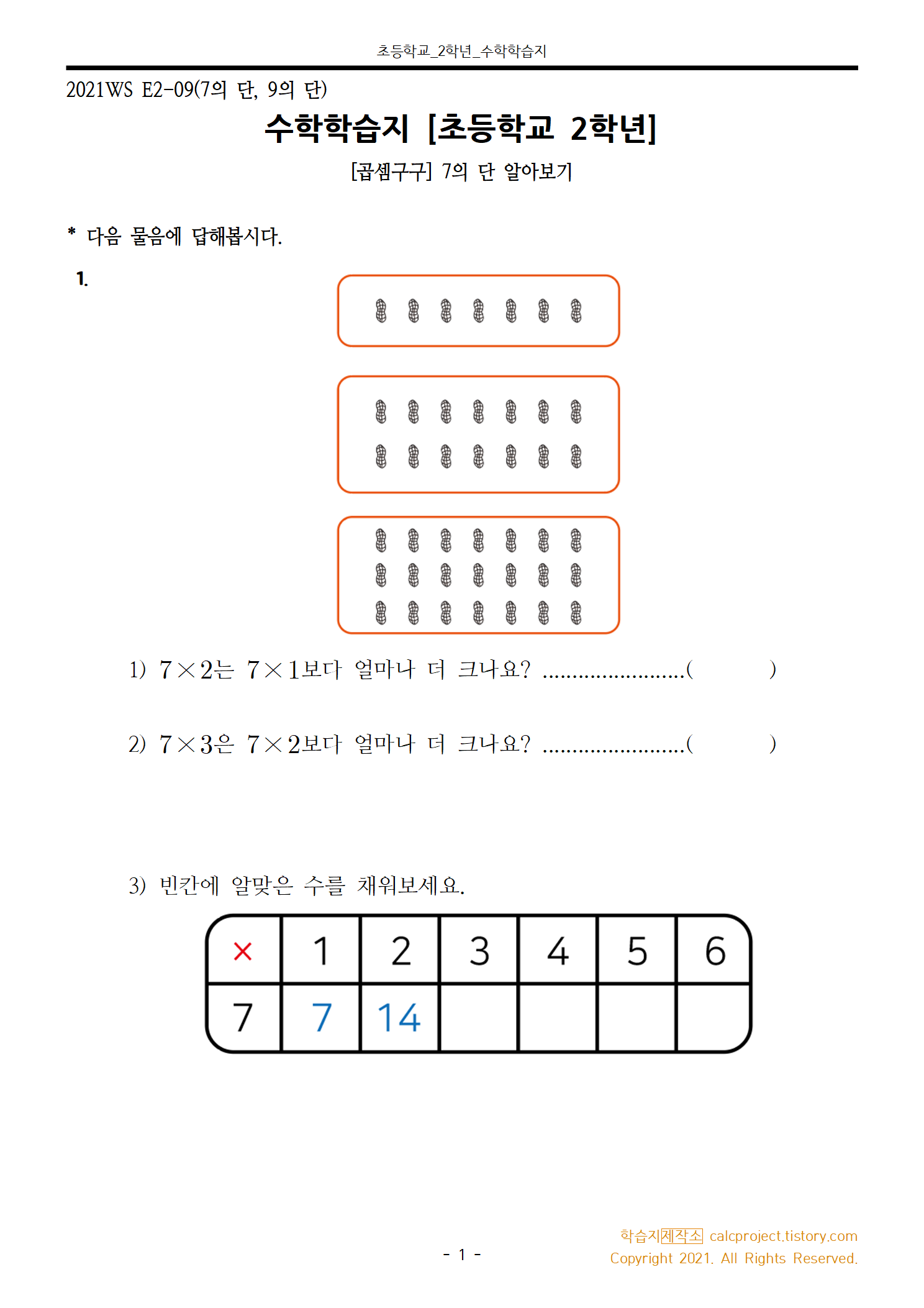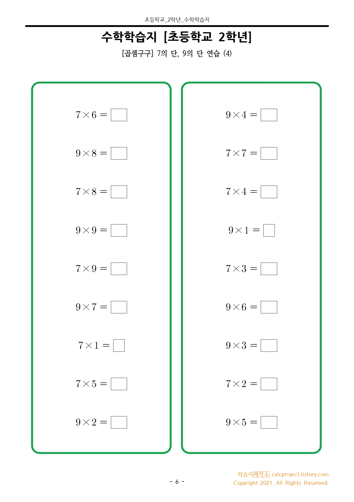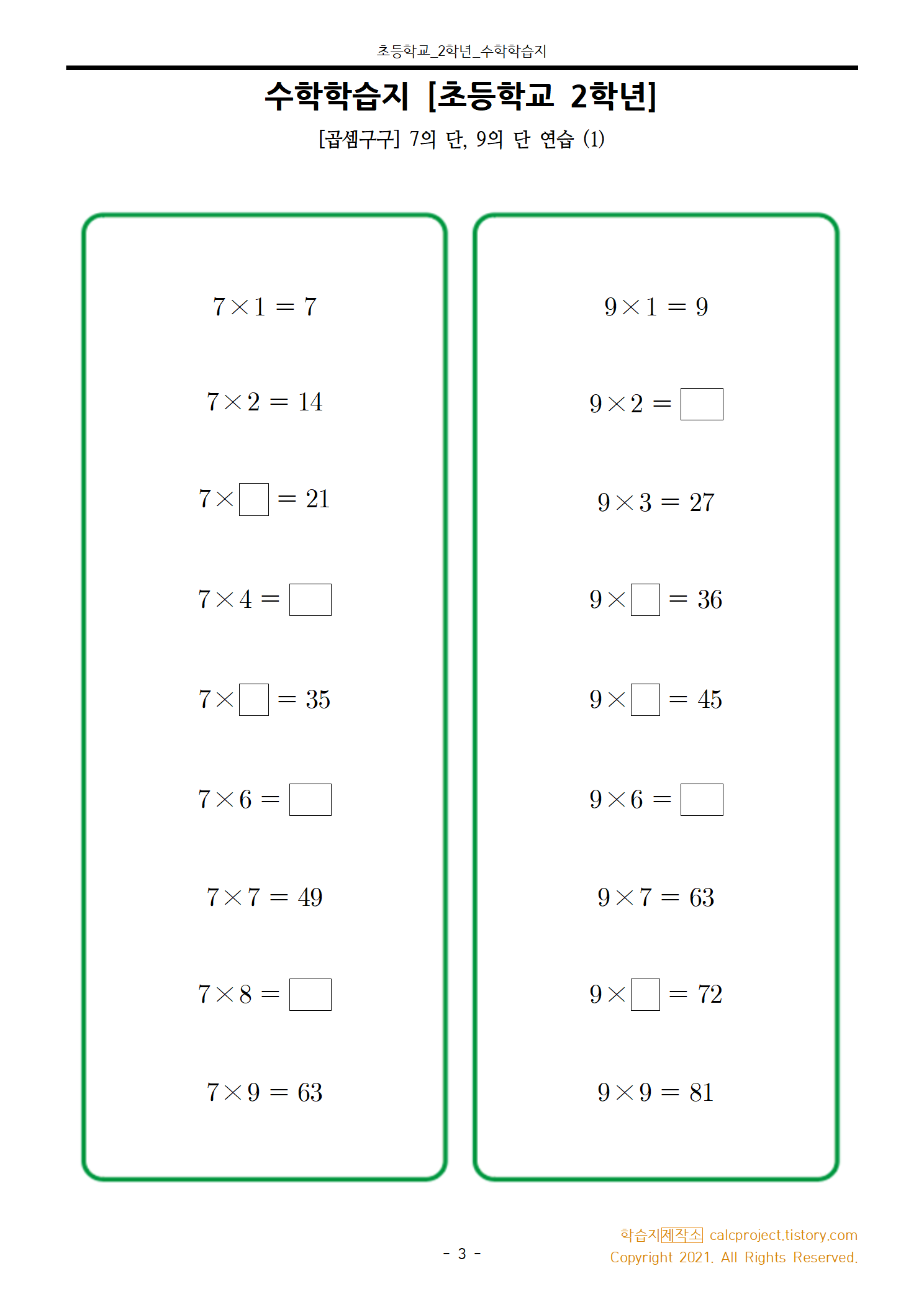 #태그 : 초2, 초등학교 2학년, 곱셈구구, 7단 학습지, 9단 학습지, 7의 단 수학학습지, 9의 단 수학학습지, 학습지제작소