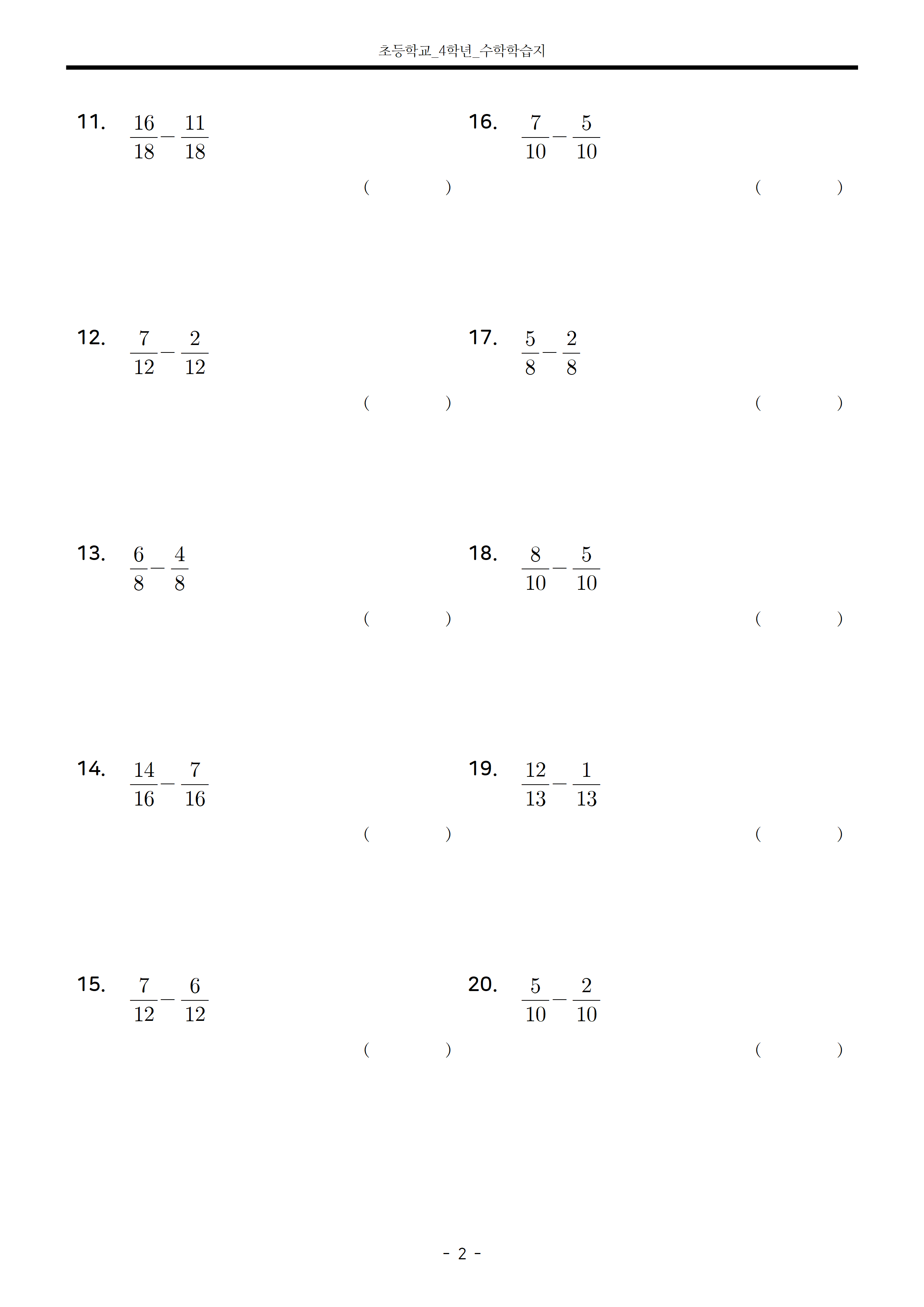 📄 [초4-2] 분모가 같은 두 진분수의 덧셈 연습문제 50문제
