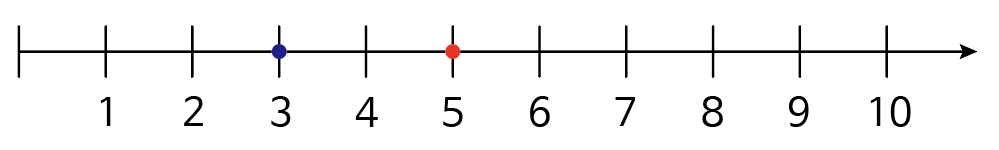 수직선에서 5는 3보다 오른쪽에 있습니다.