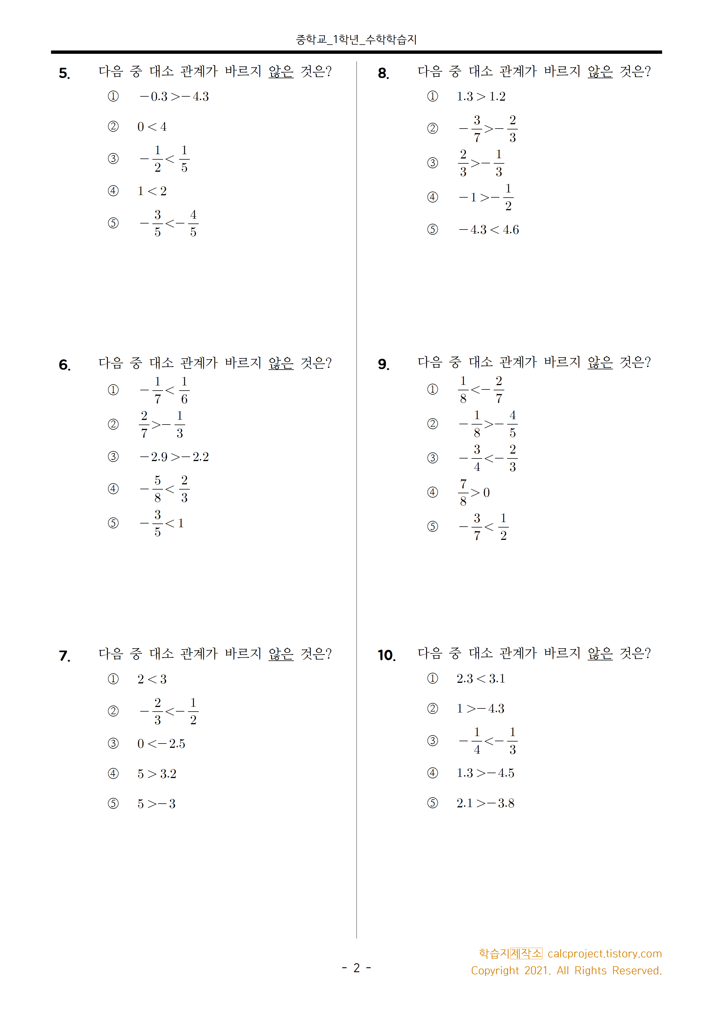이상으로 유리수의 대소 비교, 유리수 비교하기 학습지 포스팅을 마치겠습니다.