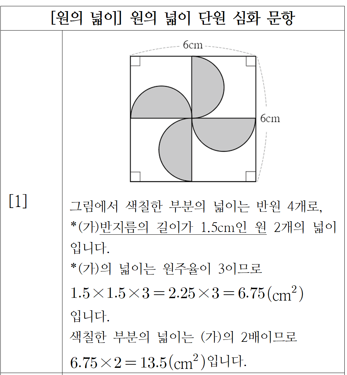 이에 원을 이용한 복잡한 도형의 넓이를 주제로 심화학습지를 만들어볼 필요가 있다고 생각했습니다.
