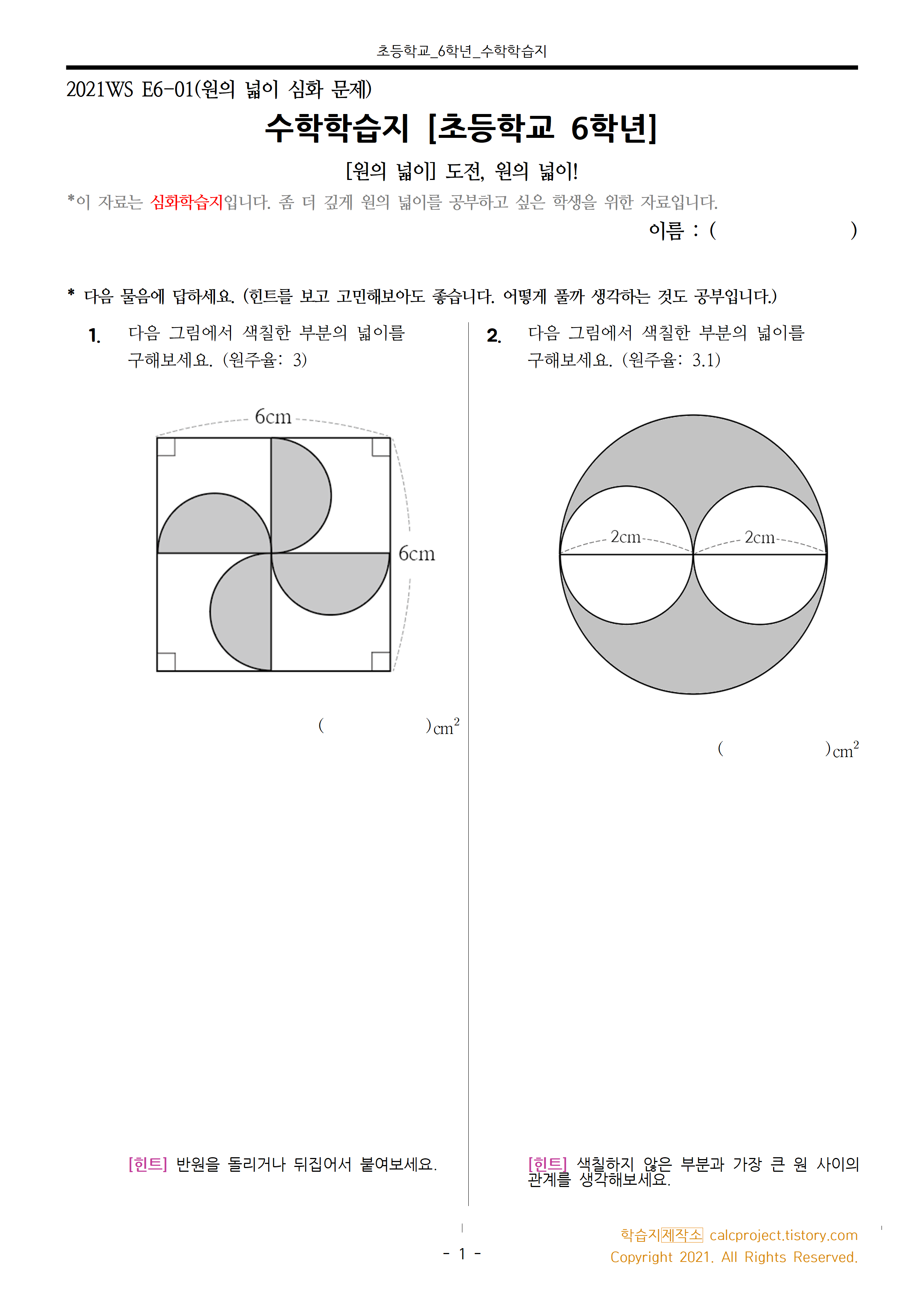 * 원의 넓이 심화학습지