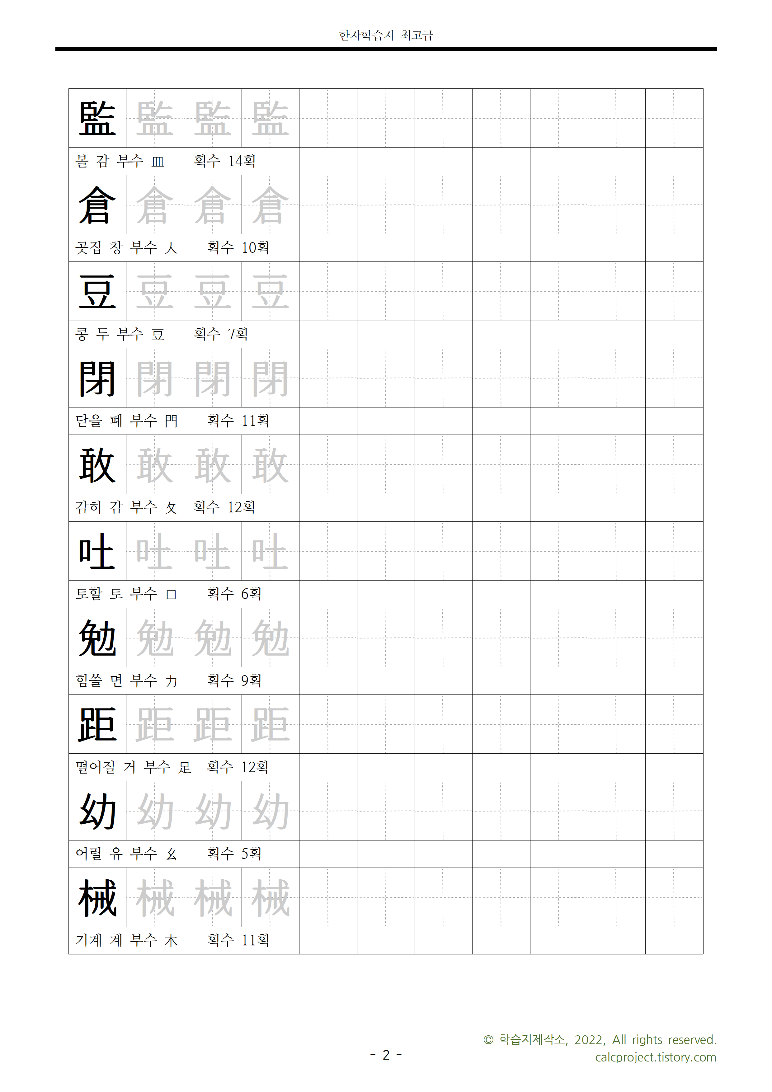 한자학습지 자료는 매주 화요일, 금요일에 업로드해볼 예정입니다.