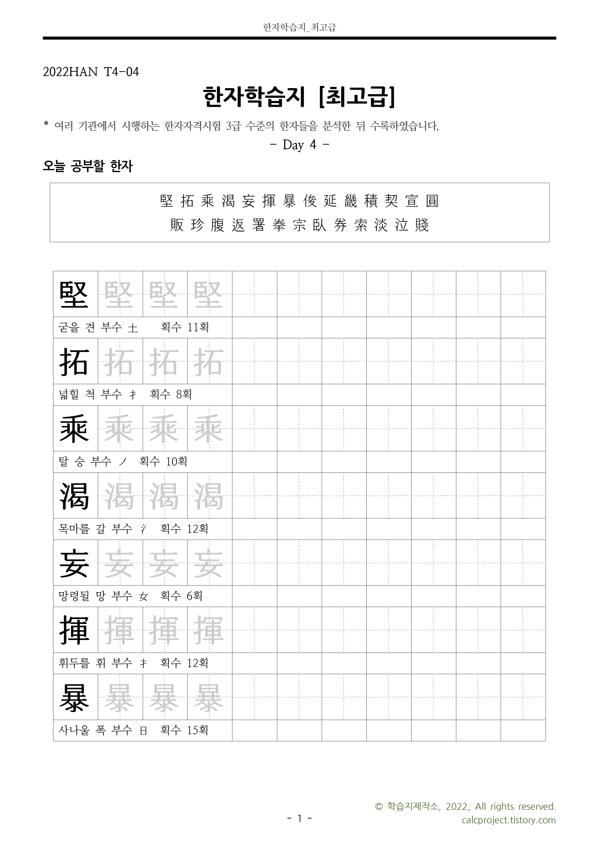 | 한자학습지 최고급 Day 2 선정한자 및 연습장 (0) | 2022.01.14 |