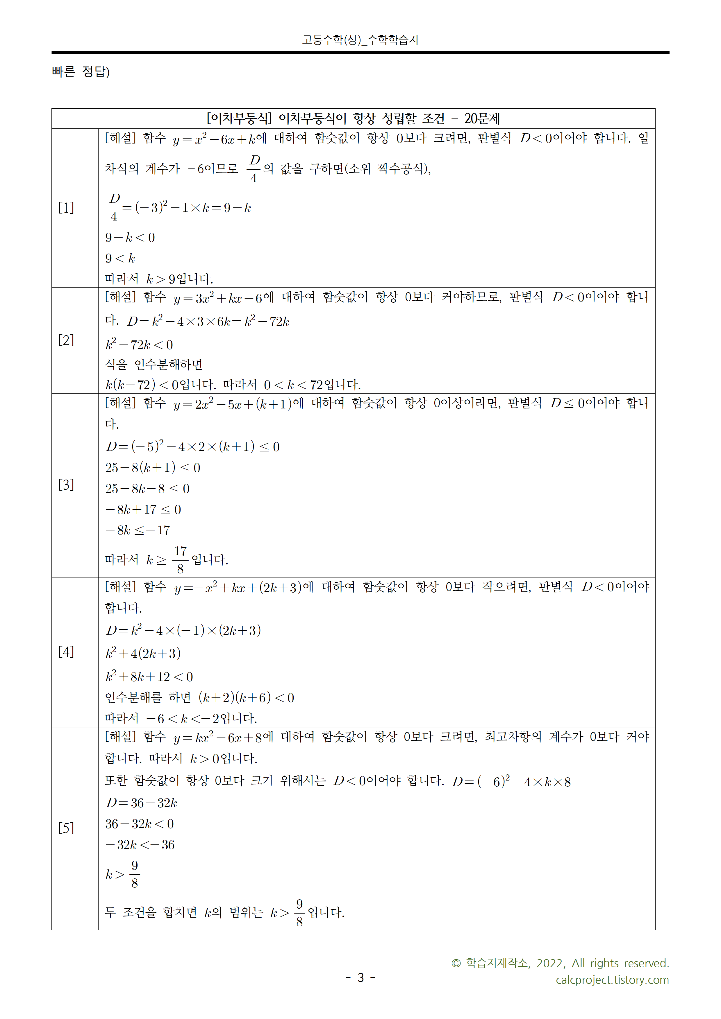 #태그 : 고등수학(상), 이차부등식, 항상 성립할 조건, k의 범위 구하기
