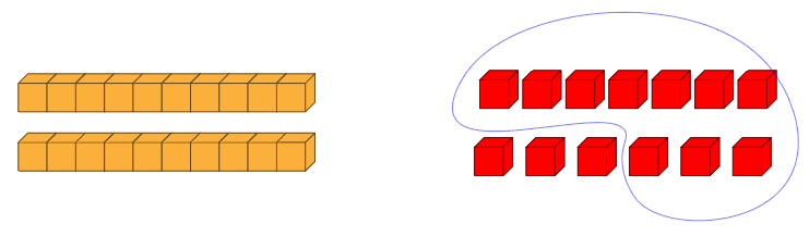 일 모형 10개는 십 모형 1개와 같으므로,